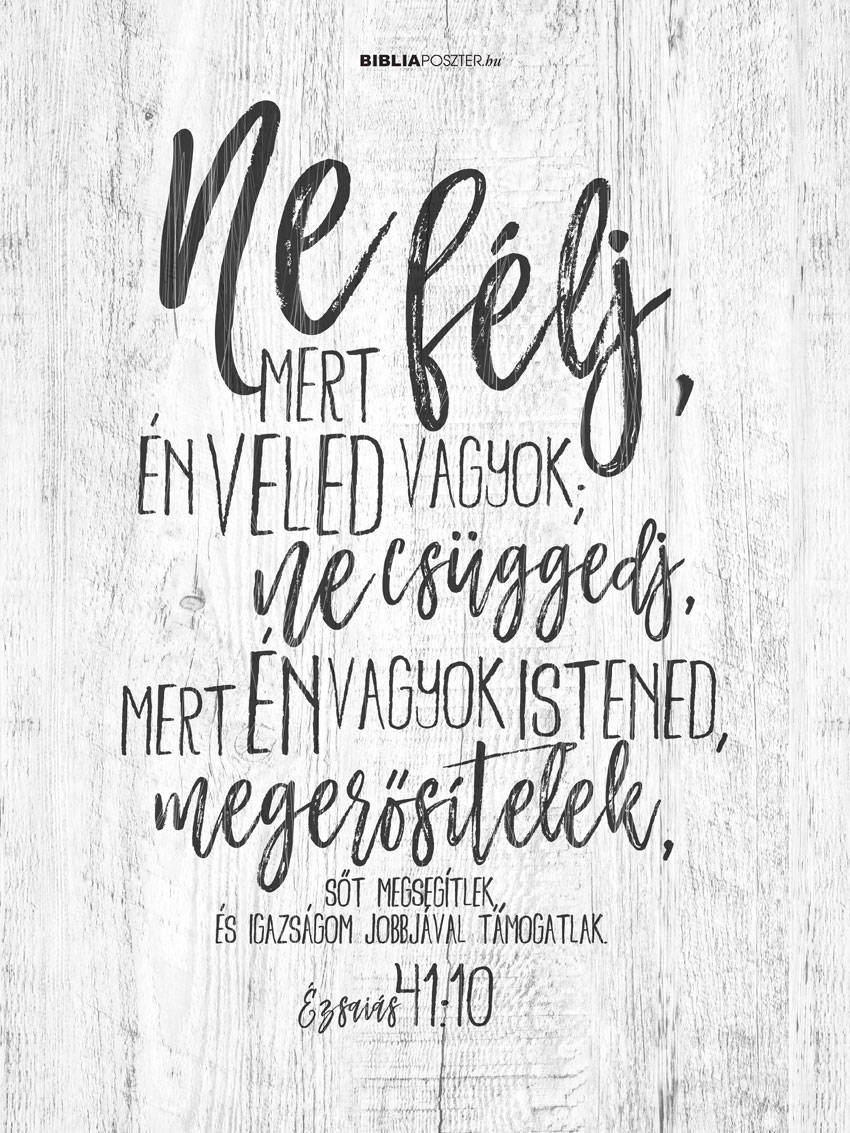 „Ne félj, mert én veled vagyok; ne csüggedj, mert én vagyok Istened; megerősítelek, sőt megsegítlek, és igazságom jobbjával támogatlak.”